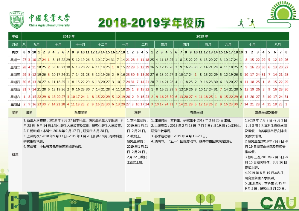2018-2019学年校历